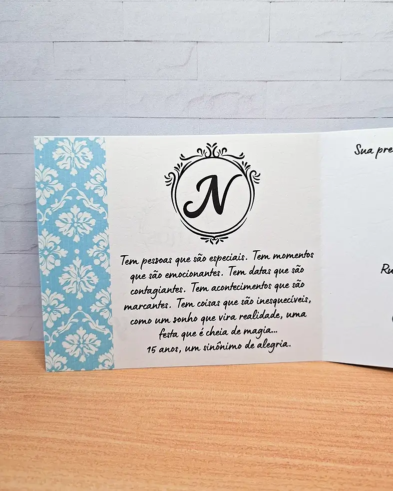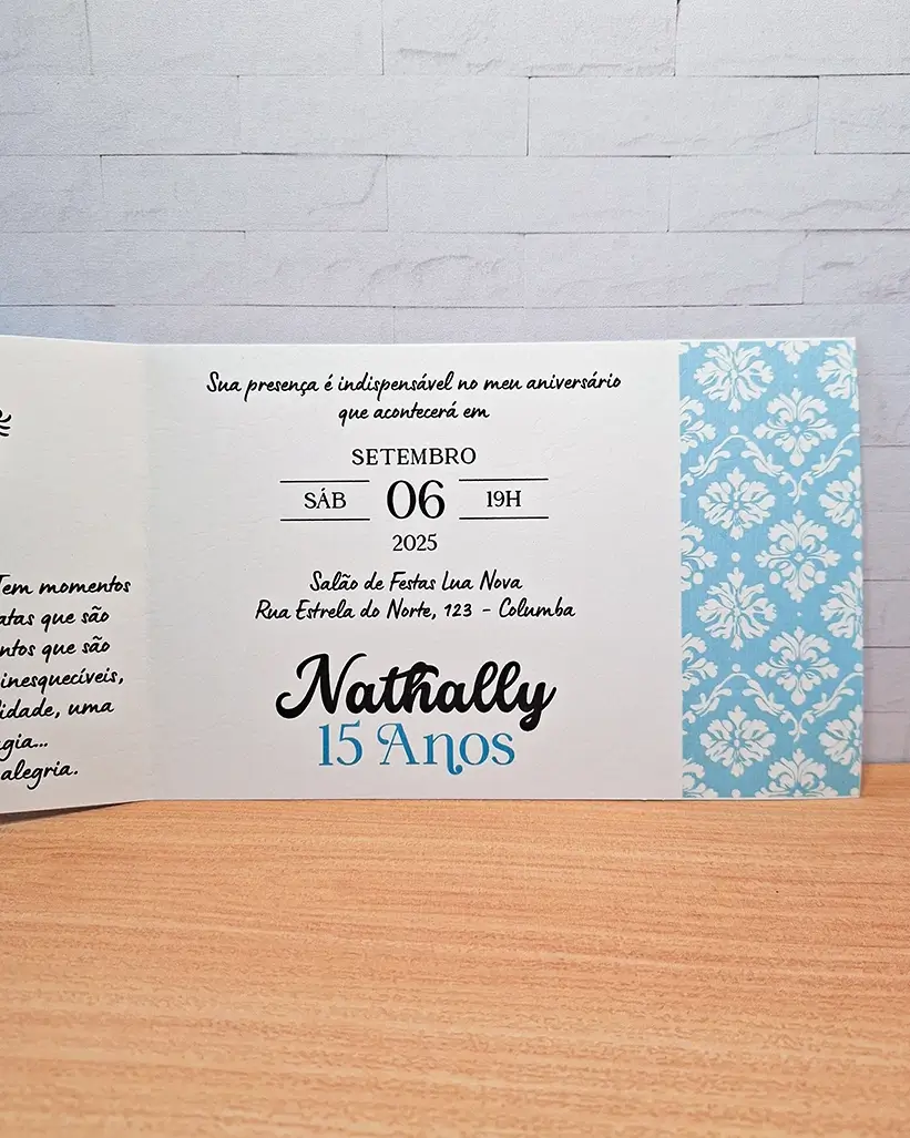 Convite ideal para festas de 15 anos ou aniversários em geral.