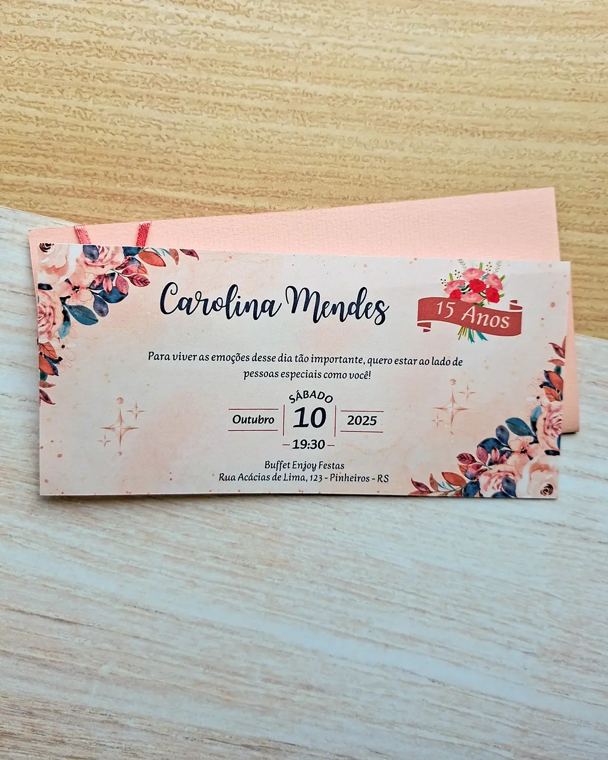 Convite ideal para festas de 15 anos ou aniversários em geral.