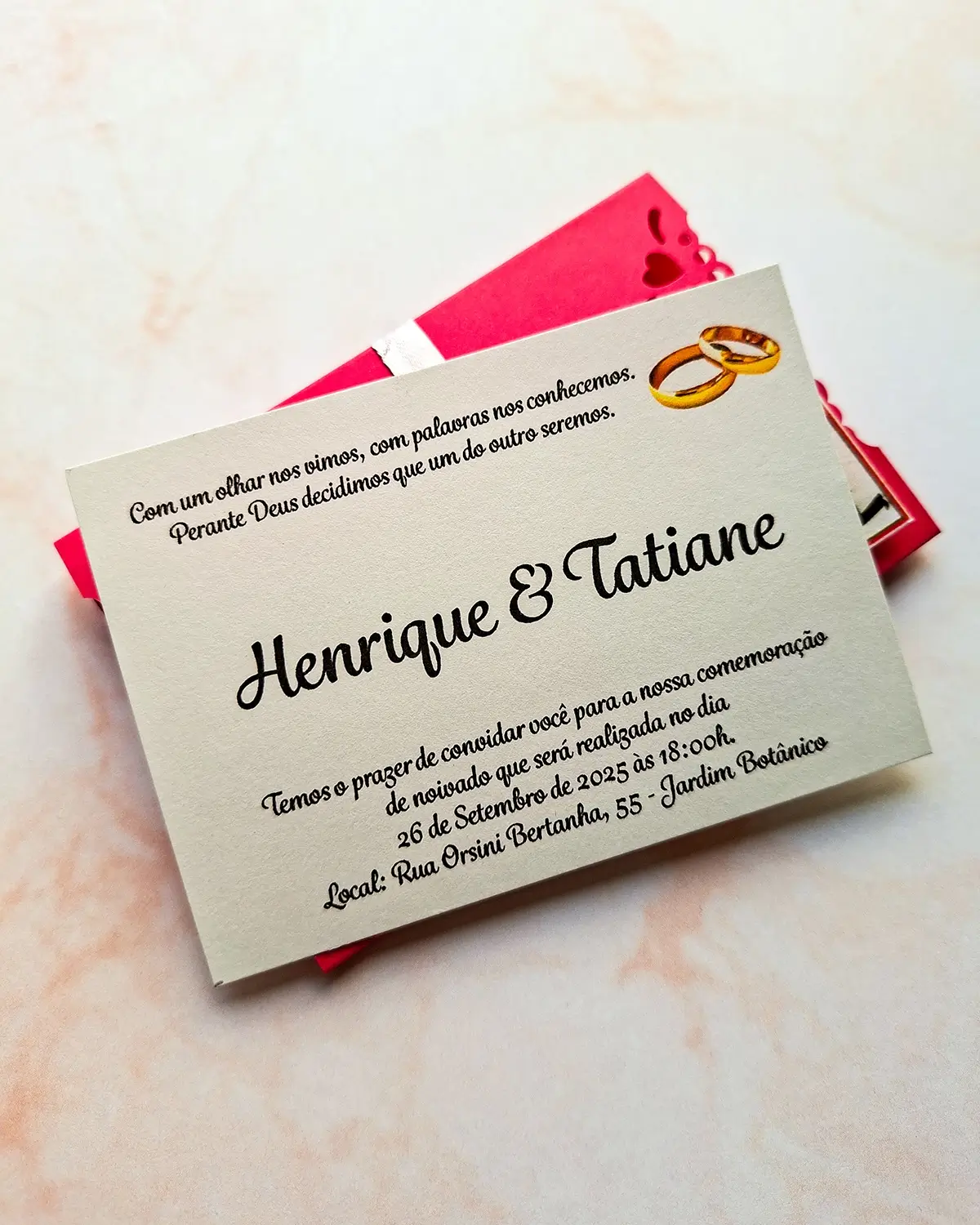 Convite PEQUENO, no estilo janela, com nome aparecendo na parte central. Esse convite pode ser usado para festas em geral, como: aniversário de adulto, bodas, 15 anos, formatura, noivado, etc.